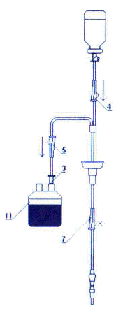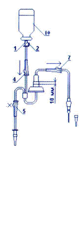 5. Переверните емкость с трансфузионной средой и закрепите ее на штативе.