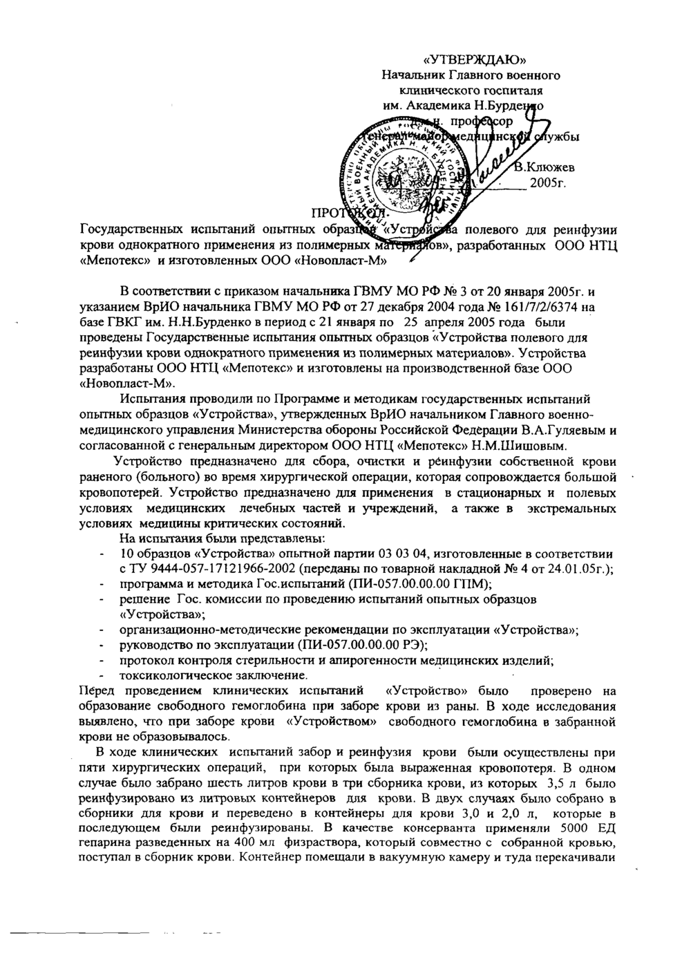 Полностью соответствует медицинским требованиям и рекомендациям к применению в медицинской практике. Предназначено для работы в условиях клинических подразделений различного профиля, активно использующих гемотрансфузионные методы терапии как с аллогенной, так и аутологичной кровью. Устройство ПК 23-01 с микрофильтром апробировано в ведущих клинических учреждениях страны (Российский научный центр хирургии РАМН, Гематологический научный центр РАМН, Главный военный клинический госпиталь им. Н. Н. Бурденко и др.).