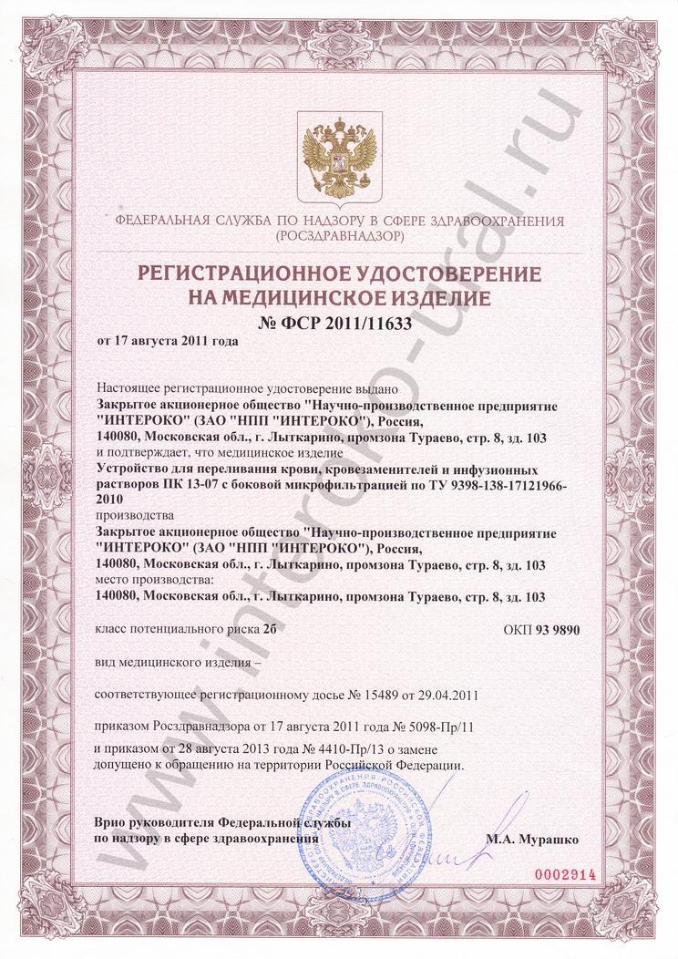 Полностью соответствует медицинским требованиям и рекомендациям к применению в медицинской практике. Предназначено для работы в условиях клинических подразделений различного профиля, активно использующих гемотрансфузионные методы терапии как с аллогенной, так и аутологичной кровью. Устройство ПК 13-07 с микрофильтром апробировано в ведущих клинических учреждениях страны (Российский научный центр хирургии РАМН, Гематологический научный центр РАМН, Главный военный клинический госпиталь им. Н. Н. Бурденко и др.).